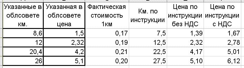 Звонили в Государственную инспекцию по контролю за ценами. Дама пояснила, что никакого отношения к повышению цен они не имеют. Она пояснила, что перевозчики сами(!) проводят расчёты, а потом передают в управление транспорта и связи обладминистрации на утверждение. То есть перевозчик может докинуть в маршрут 106 пару лишних километров, чтоб перескочить из зоны 22,5км в зону 27,5км. Это и должно стать предметом проверки, ну и плюс кто там на самом деле платит НДС.